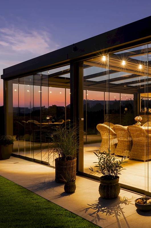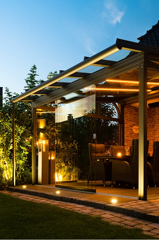 Ein Sommergarten verlängert Ihre Outdoor-Saison von Frühjahr bis Herbst. Dank flexibler Schiebe- oder Faltelemente passen Sie das Klima ganz einfach an. In der kühlen Jahreszeit sorgt ein Heizstrahler für wohlige Wärme – und schafft einen geschützten Rückzugsort mit Licht, Weite und Blick ins Grüne.