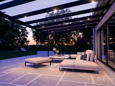 SunChill® von TS Aluminium stehen für zuverlässige Materialien, robuste Oberflächen und eine durchdachte Statik – entwickelt und gefertigt in Deutschland. Hochwertiges Aluminium, robustes Sicherheitsglas und ein System, das Regen und Schnee dauerhaft standhält: So bleibt Ihre Überdachung auch nach vielen Jahren formschön, funktional und wertbeständig.