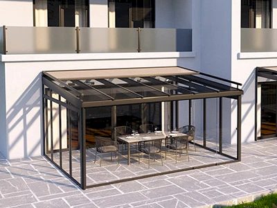 Optionale Seitenelemente aus Glas für die Erweiterung zum Sommergarten