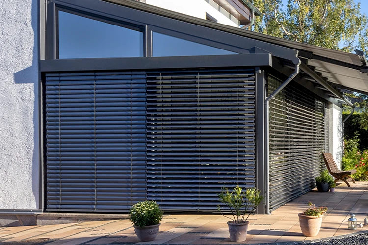 Zip-Markisen und Alu-Raffstores schützen wirksam vor tief stehender Sonne und direkter Einstrahlung auf Glasflächen. Beide Systeme werden außen montiert und verhindern so, dass Sonnenstrahlen auf das Glas treffen. Sie lassen sich individuell nach dem Sonnenstand ausrichten und sind deshalb die ideale Ergänzung für eine Dachmarkise. Die Produkte lassen sich bequem über Somfy steuern.